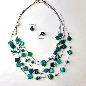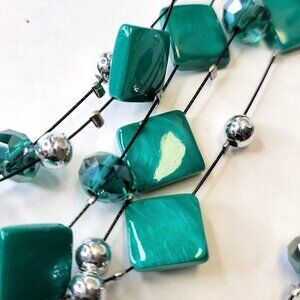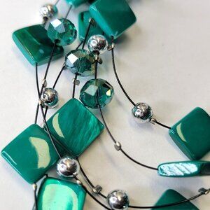 Multistrand Layered Teal Green Bead Necklace