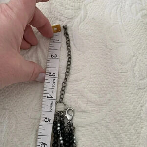 Black, silvertone and shades of grey mixed sized beads on wire. Pls see photos for details.