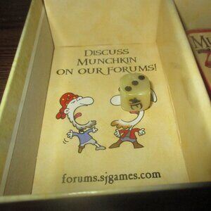 This complete board game: Munchkin Zombies from Steve Jackson Games, the 2014 1st edition but 7th printing, which is complete and in great shape, the box is completely intact with very little wearing on the box. All the pieces including the instructions are all there and I counted out all the cards as well. It is sold as is.