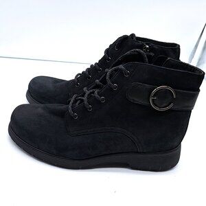 The Munro Buckley Black Nubuck is a women's hiker-style ankle boot known for its comfort,