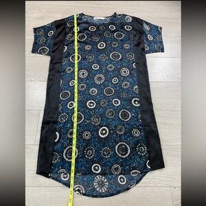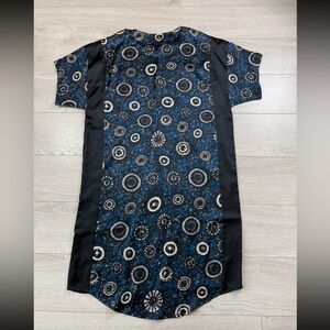 Munthe Blue and Black Patterned Silk Shirt Midi Dress