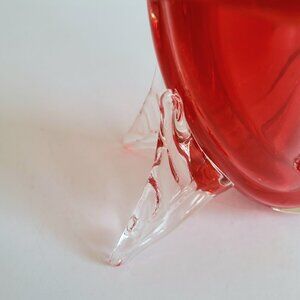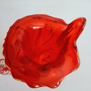 Murano Art Glass Cornucopia Jack in the Pulpit Red and Clear Vase. MCM decor.