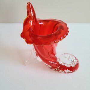 Absolutely beautiful Murano Art Glass Cornucopia Jack in the Pulpit Red and Clear Vase. 7 3.4'' tall, 6.5'' wide. Great condition.