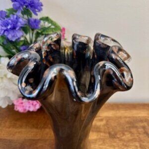 Murano Master Glass Vase – Copper Aventurine Ruffled Top with Original Label