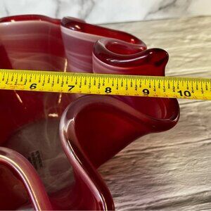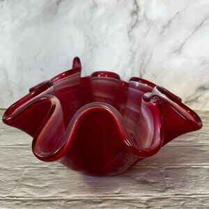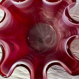 Murano Red White Cristal Swirl Handerkerchief Bowl/Vase Hand Blown