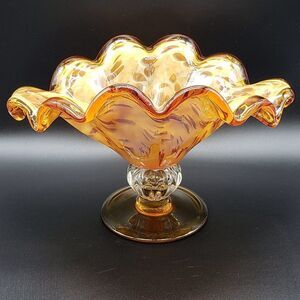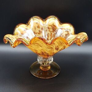 Murano Style Art Glass Amber Ruffled Console Bowl/Centrepiece