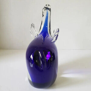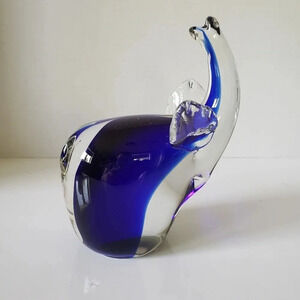 Murano Style Cobalt Blue Elephant Art Glass Paperweight.