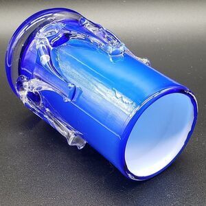 Murano Style Vintage Cobalt Blue White Cased Clear Rigaree Art Glass Vase