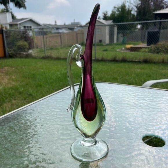Murano Venetian Purple & Green Uranium Sommerso Glass Stem Vase Hand Blown
