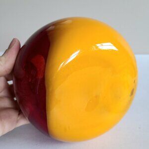 Murano(?) red and yellow asymmetrical round organic contemporary design shape vase.