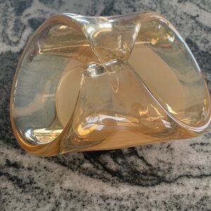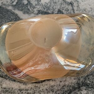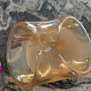 Murano style Italy hand blown glass basket champagne art glass mantle decor gift idea collectors item. Measurements in photos.