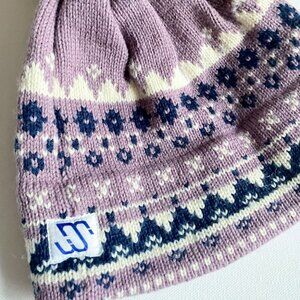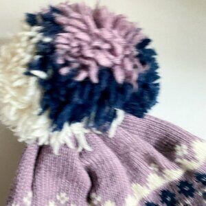 Murray Merkley Purple Blue Pom Pom Accent Pure Virgin Wool Handmade Hat