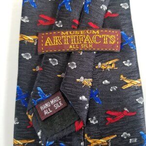 Museum Artifacts Tie Airplane Necktie Men's 100% Silk Handmade Blue