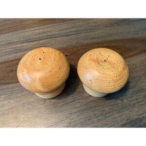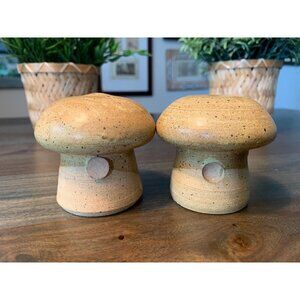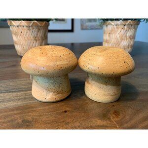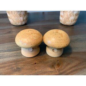 Mushroom Salt Pepper Shakers Signed Vintage Shades Brown Cork Stopper