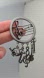 Silver-tone brooch with musical instrument charms and rhinestone accents.