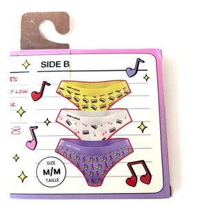 Musical Underwear W/ Mixtape Box Cute Girls Underwear 3PC Set Retro Print Size M