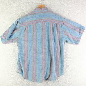 Muskoka Lakes Shirt Mens Laqrge Blue Red Striped Button Up Textured Vintage 90s