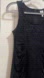 Elegant black sleeveless dress. Features lace detailing. Perfect for any occasion.