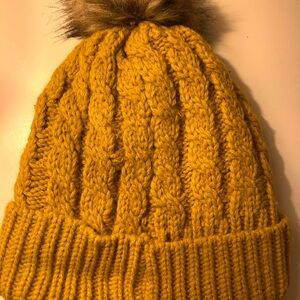 Mustard Just Cozy Knit Beanie with Pom Pom
