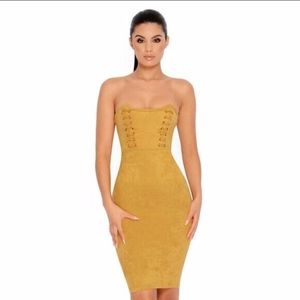 Suede Bustier Knee Length Mustard Dress Size 4 Colour: Mustard Condition: 9.5/10 Brand: OhPolly