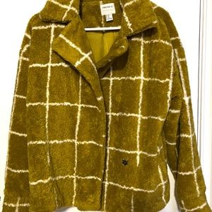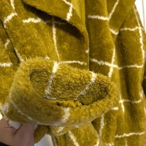 Beautiful and retro mustard yellow teddy jacket with silk lining. Size XS with a loose fit. Perfect for mob trend that’s going around. Warm and stylish. Color hasn’t faded and in excellent condition. See photos for closer look. No pilling/marks/damages. In pristine condition.