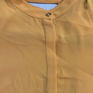 Elegant golden blouse with button-up design. Ideal for versatile styling.