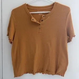 Mustard Yellow Ribbed Button Tee