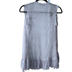 Vintage lace Waistcoat, with intricate floral detailing and ruffled hem.Layer over your favourite knitwear or long-sleeve top.