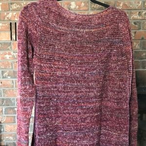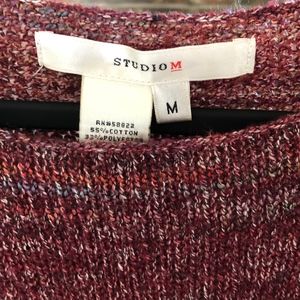 Multi in colour Only worn a few times. Great shape Size m. I have long arms and it fits me good. Its a lighter weight sweater.