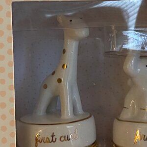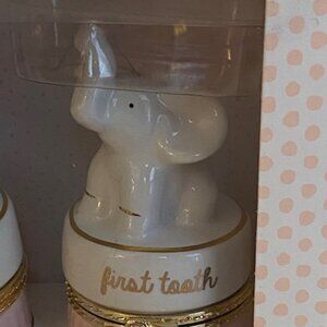 My First Tooth and My First Curl Keepsake gift box set Baby/ Baby shower gift. Made by Mud Pie. New in Unopened sealed box. Elephant and Giraffe trinket boxes. White Gold and Pink