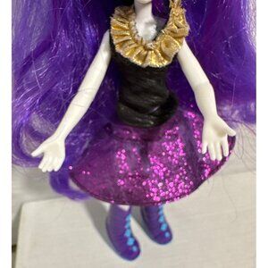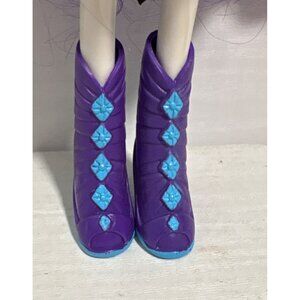 This Monster High Equestria Girls doll features vibrant purple hair and a stylish outfit. Designed for collectors, this doll showcases intricate details and bold colors. The doll is an excellent addition to any collection, offering a unique blend of Monster High and Equestria Girls aesthetics.