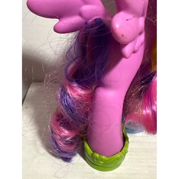 This collectible My Little Pony figure showcases vibrant rainbow colors, detailed accessories, and durable material, appealing to enthusiasts and children alike.