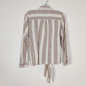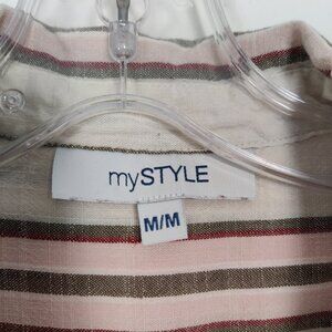 My STYLE Women's Shirt Size M Striped White Pink Tie Cotton Viscose Casual Chic Daily Outerwear