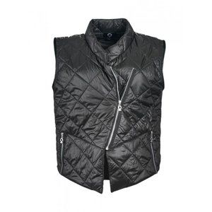 Quilted sleeveless vest in a chic biker style. Asymmetrical design , zippered detailing all over.. An all season item in your wardrobe.