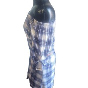My Style Blue Plaid Faux Button Front Dress with Belt Sz.S