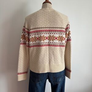 My Style - Tan Women Winter Snowflake Knit Cardigan - button closure - long Sleeves - Excellent pre-owned condition
