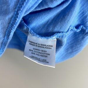 Women’s light blue My Style Flutter Short Sleeve Crochet Neck Top.