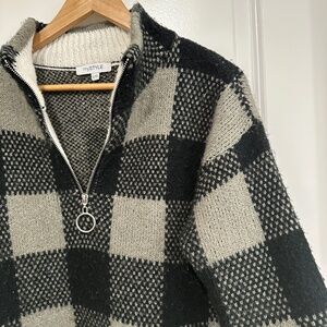 My Style | Women’s Large Black Cream Gray Plaid Sweater Cozy Fall Quarter Zip