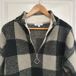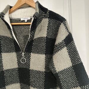 My Style | Women’s Large Black and Cream Gray Plaid Quater Zip Sweater