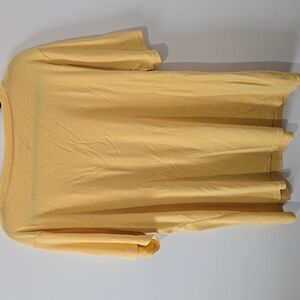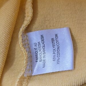 Ladies size 2X fitted t-shirt from the brand MyStyle. This yellow shirt is made from 65% Polyester and 35% Cotton.