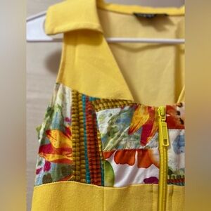 ⚪️ Myco Anna Yellow Zip Up Sleeveless Dress with Colorful Pattern Size XS