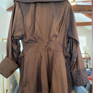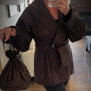 New, never worn, extra buttons still attached, this is the most remarkable weather resistant, high quality jacket from Mycra Pac! Fully reversible from on trend leopard print to rich chocolate brown, with wide shawl collar, self tie belt, button closure, side slash pockets, full soft pleated back. Gorgeous and rich looking, evening glam or daytime chic. Size 0-P translates to 6-8 according to size chart, but forgiving in fit (model wears a 10). Turn up cuff or not. Amazingly versatile with lots of expensive looking details: this will ooomph up the most boring of basics in your wardrobe. Comes with sweet little matching bag for use, or for storage. Original price $395 American, $510.00 Canadian. If you are adding just one piece to your closet, this should be it! Add some coordinating pieces from Our Closet (some suggestions shown all listed and priced separately), make a bundle to save a bundle! There's always something Fresh from Lemon Squeezy Shop🍋