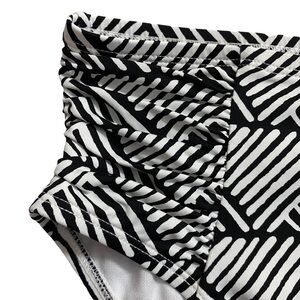 Mynah High Rise Black White Triangles Pattern Swim Bottoms Ruched Sides Large