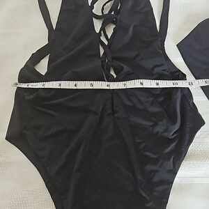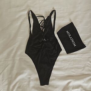Myra Swim One Piece Bathing Suit Lace-Up, Low Back Black Small