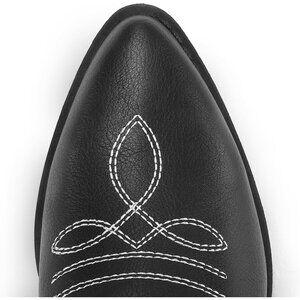 🆕Mysoft Cowboy Heel Boots Women Black White PU Embroidered Mid-Calf Pointed Toe