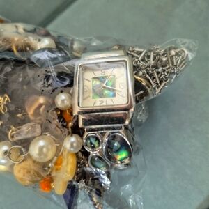 Mystery craft jewllerybbeag. includes miscellaneous parts one wearable neckla e and much more priced according.
