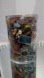 A diverse collection of jewelry in a clear container. Features various colors including blue, gold, and silver. A mystery jar filled with different styles and colours of jewelry! Bracelets, earrings,necklaces, a watch , brooches & more ! So fun to open and makes a great gift ! Most pieces are in very good condition.