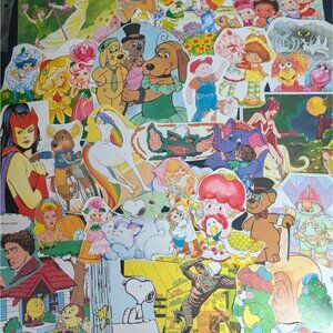 This is for the sticker-book survivors, the ones who watched Saturday morning cartoons and PBS Kids, and still remember the words to the Duck Tales theme song. Packs of 50+ large cutouts of beloved (and slightly weird) characters all hand-cut from real vintage children's books. Size of cutouts range from 3" to 8". Hand cut, untreated paper.