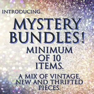 minimum of 10 items and will be a surprise mix of vintage, new and thrifted items/clothing/accessories. If you purchase be sure to message me your jean size and shoe size as well in case I have items in your size to include.