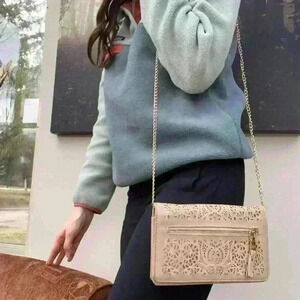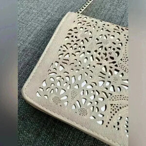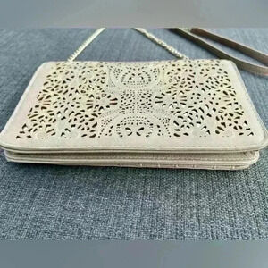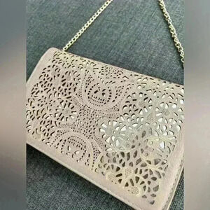 Mystique Women’s Floral Cut Out Tan Gold Chain Luxury Purse Wedding Guest Party